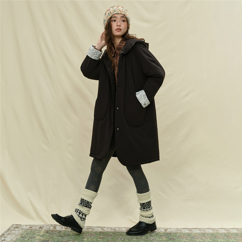 女裝拼接連帽中長款棉外套