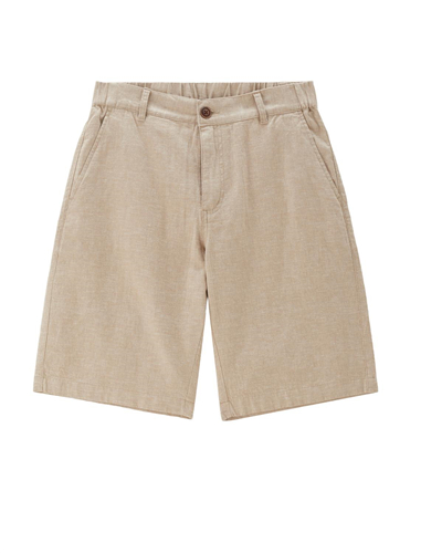 【網上獨家】男裝天然棉麻半鬆緊腰梭織休閑短褲