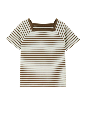 【網上獨家】BM 女裝純棉撞色方領插肩條紋T恤