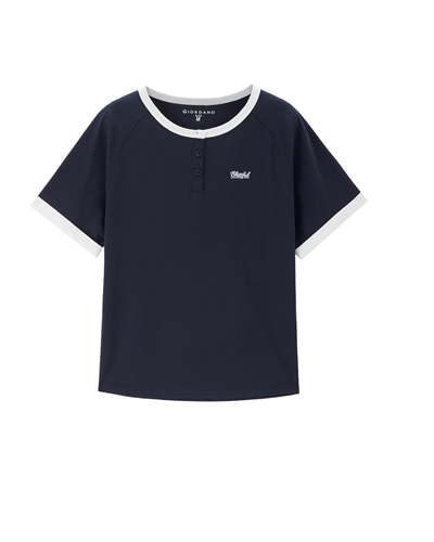 【網上獨家】BM 女裝涼感刺繡撞色亨利領短袖T恤