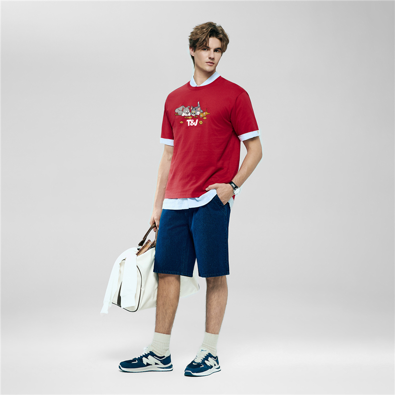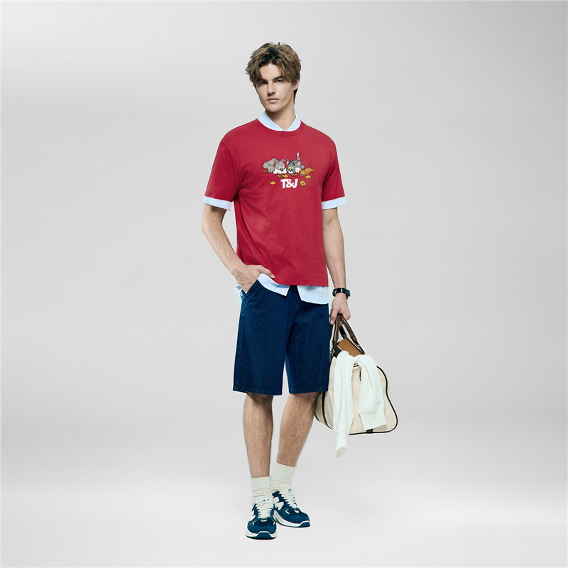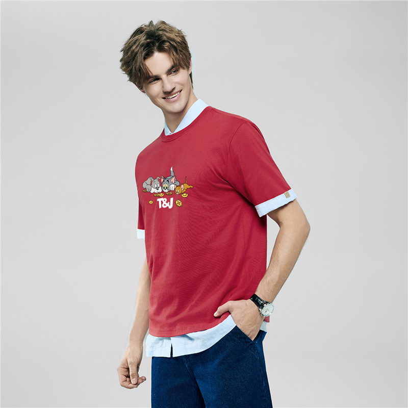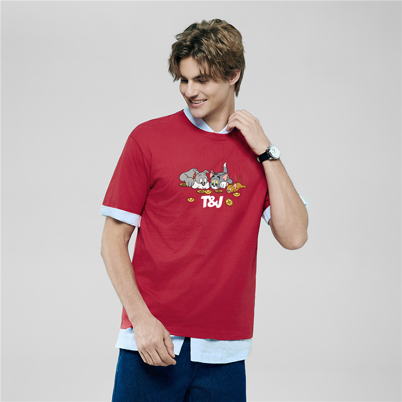 Men Tom and Jerry Collection Printed Crew Neck Short-Sleeved T-Shirt (Chinese New Year)