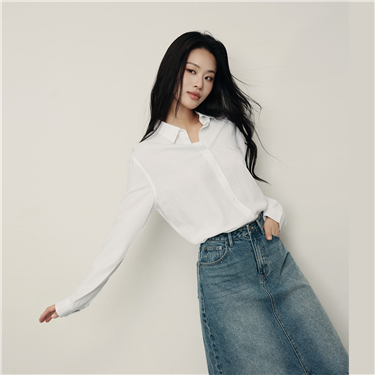 Women's Oxford Woven Collar Long Sleeve Shirt
