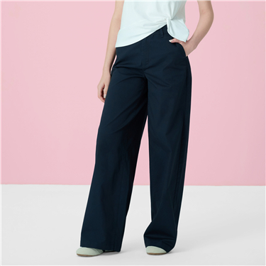 Women's High Waist Twill Wide Leg Pant (180° Elastic Waistband)