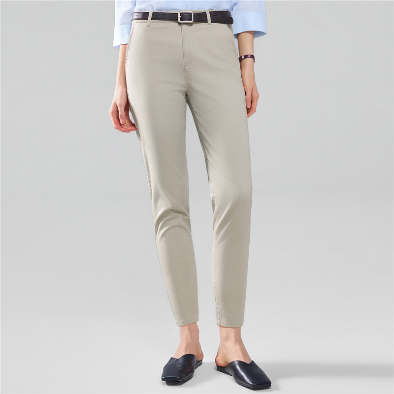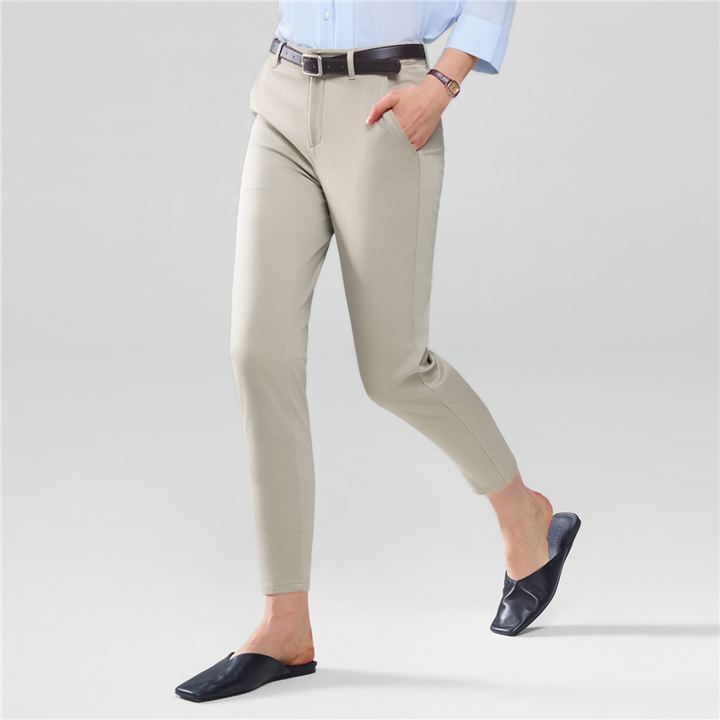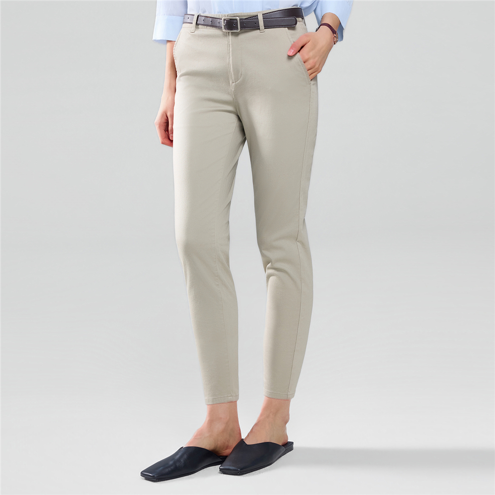 Women Cotton Elastane Twill High Waist Regular Pant (180° Elastic Waist)