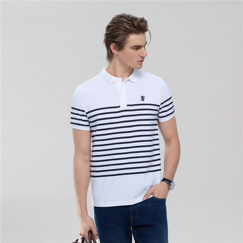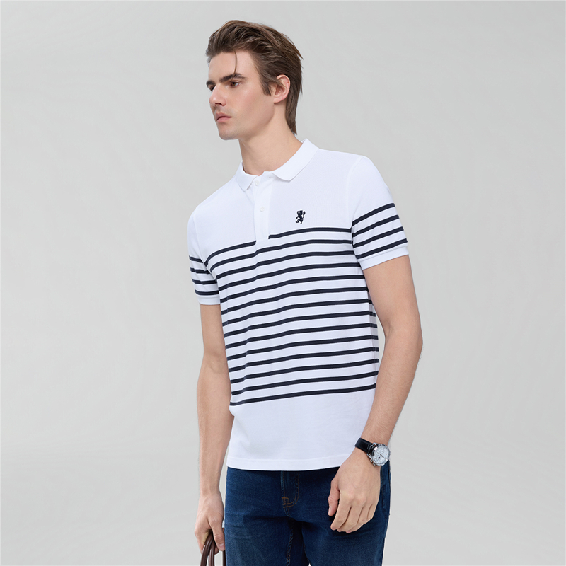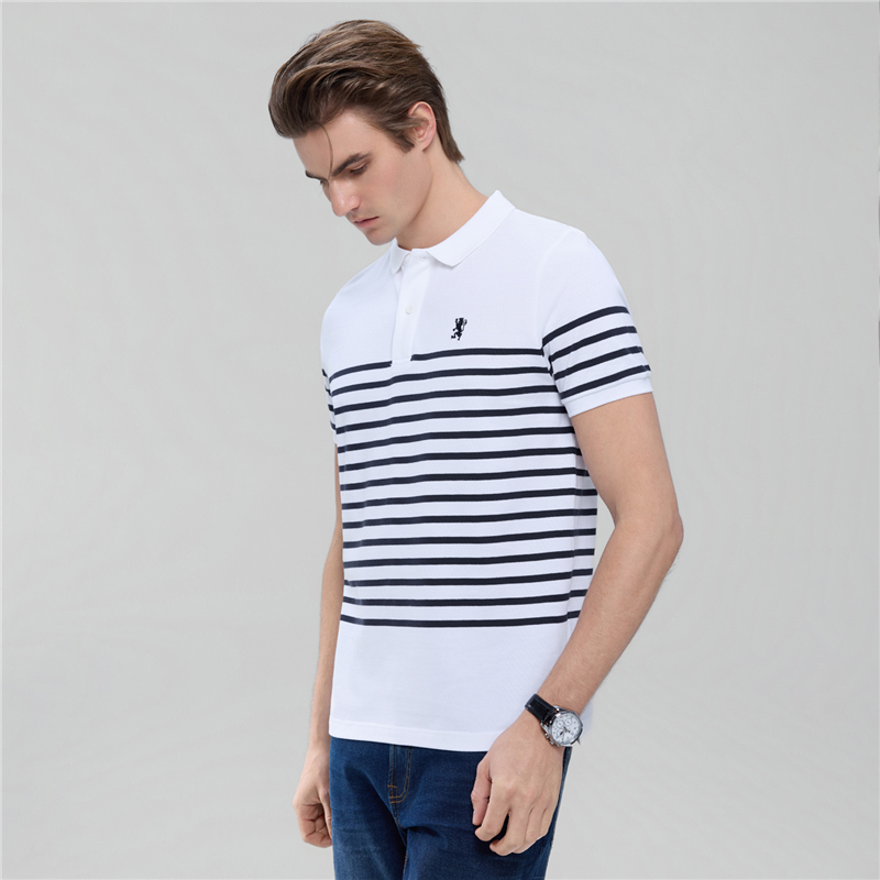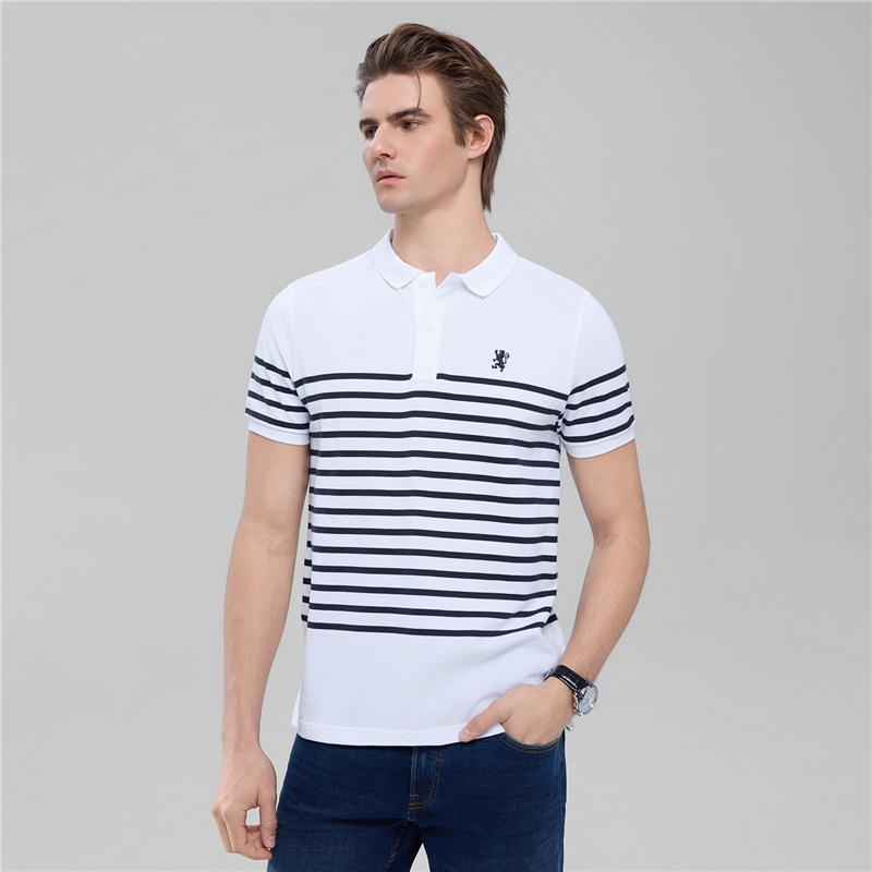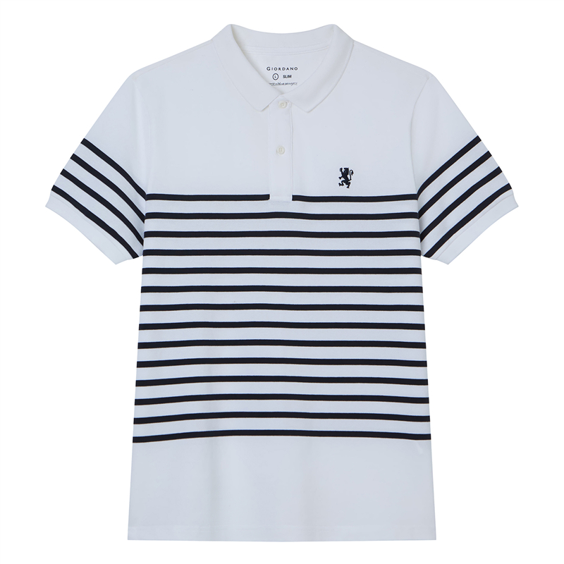 Giordano Men Striped Lion Embroidery Slim Polo