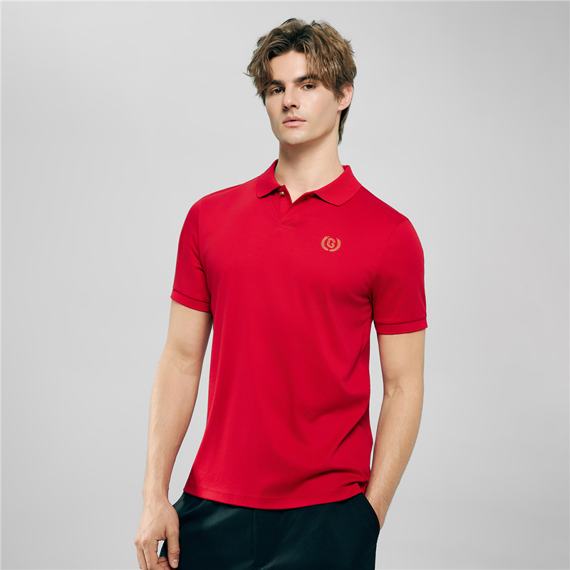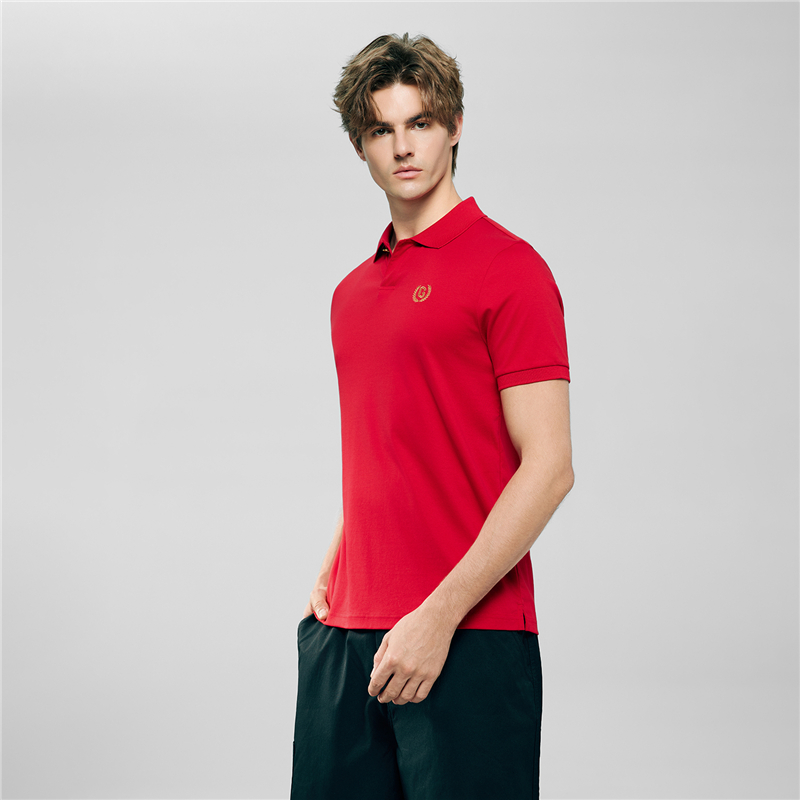 Ribbed polo collar with button placket.