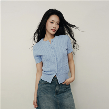 100% Cotton short sleeve cable knit cardigan
