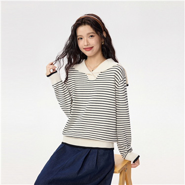 Sailor collar contrasting stripe sweater