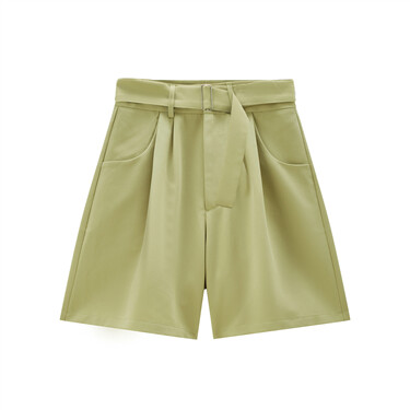 Belted waist mid rise shorts