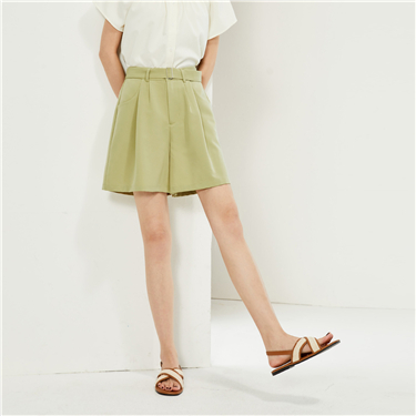 Half elastic waist pleated loose shorts
