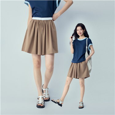 100% Cotton half elastic waist pleated skorts