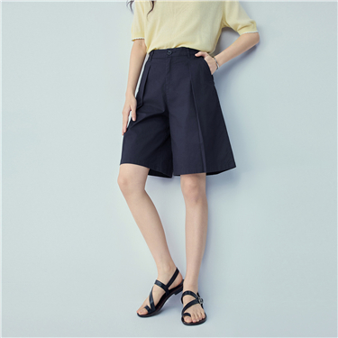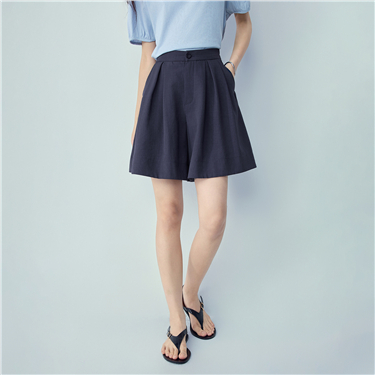 Button placket wide leg pleated skorts