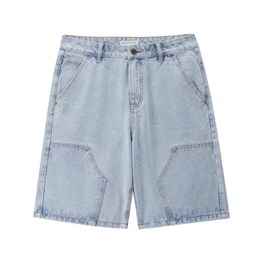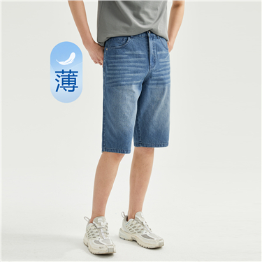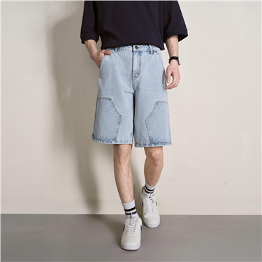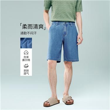 Half elastic waist denim shorts