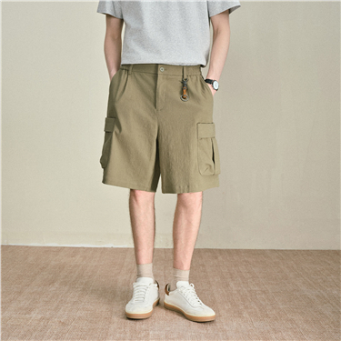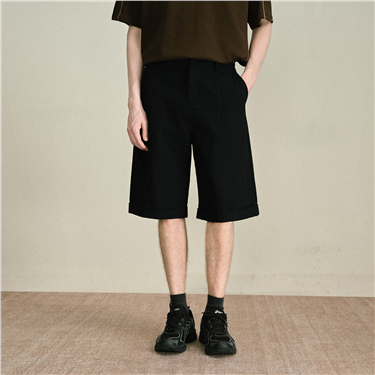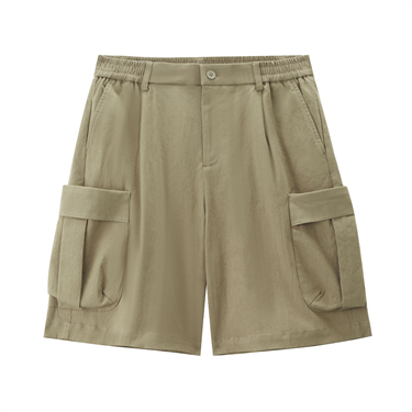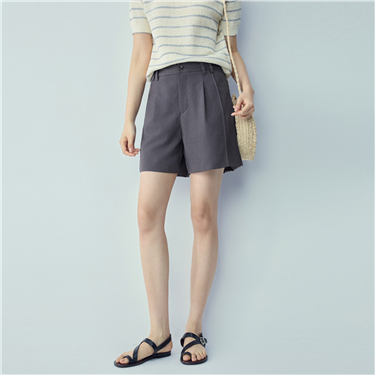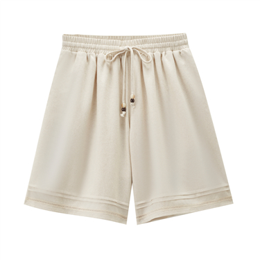 Pleated waist drawstring woven casual shorts - High Quality