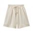 Linen cotton elastic waist shorts